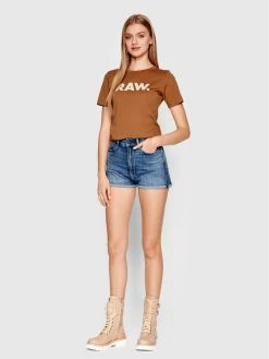 Προϋπολογισμός 👏 G-Star Raw Γυναίκες T-shirts T-Shirt Raw. D21226-4107-C740 Καφέ Slim Fit ✔️