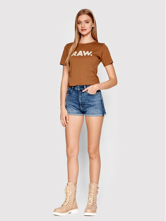 Προϋπολογισμός 🛒 G-Star Raw Γυναίκες Μπλουζάκια Ζιβάγκο Rib Mock D22074-D107-D312 Καφέ Slim Fit 🥰